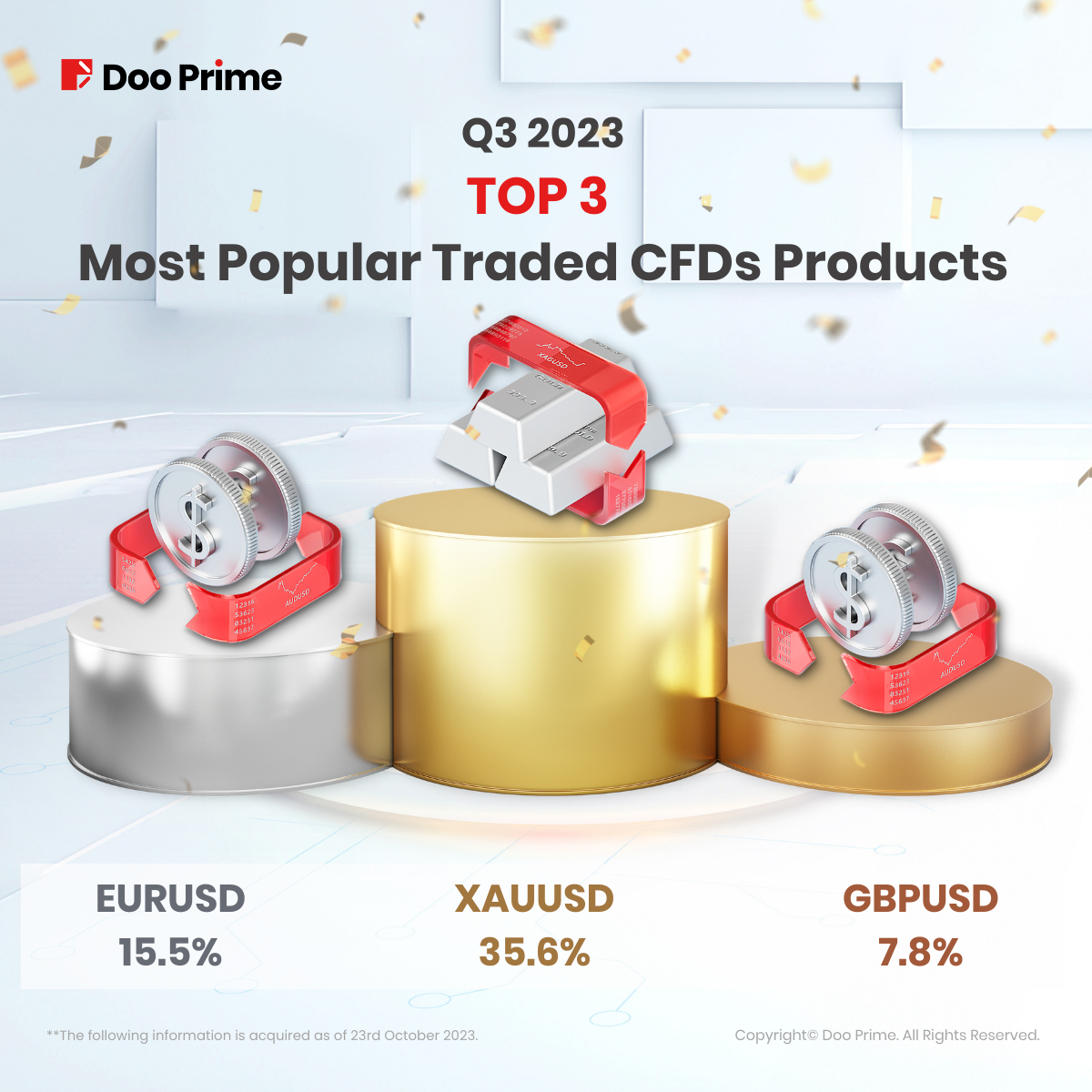 Doo Prime, an international preeminent online broker under Doo Group, strives to provide professional investors with global CFD trading products in Securities, Futures, Forex, Precious Metals, Commodities, and Stock Indices. At present, Doo Prime is delivering the finest trading experience to more than 130,000 clients, with an average trading volume of more than USD 51.223 billion each month.