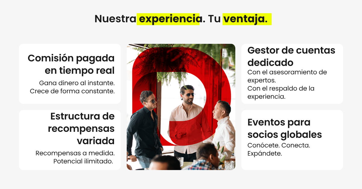 Entendemos que un intermediario no es solo un referente, sino un socio a largo plazo. Por eso, mejoramos continuamente nuestro programa de intermediarios para garantizar que siga siendo competitivo, rentable y orientado al rendimiento.