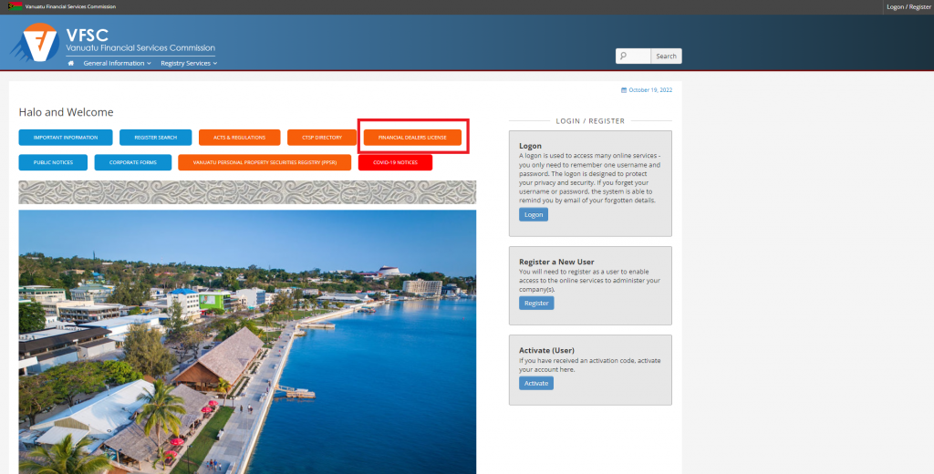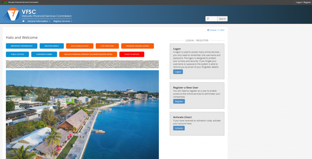 Step 1: Please visit the VU FSC’s official website at www.vfsc.vu