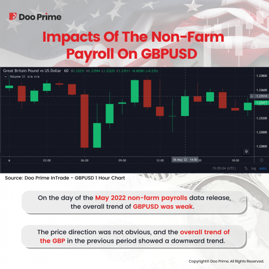 On the day of the May 2022 non-farm payrolls data release (6th May 2022), the overall trend of GBP/USD was weak.