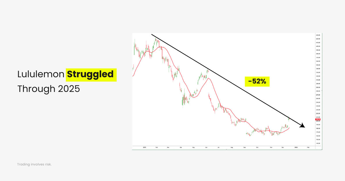 Lululemon faced pressure from slowing consumer demand and rising competition within the premium apparel space. Margins came under scrutiny as discretionary spending softened, leading to underperformance relative to broader consumer benchmarks.
