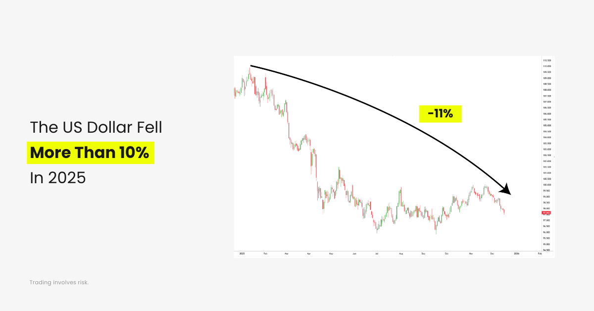 Even before cuts materialize, the direction of policy often matters more than the timing. In 2025, that directional shift worked against the dollar.