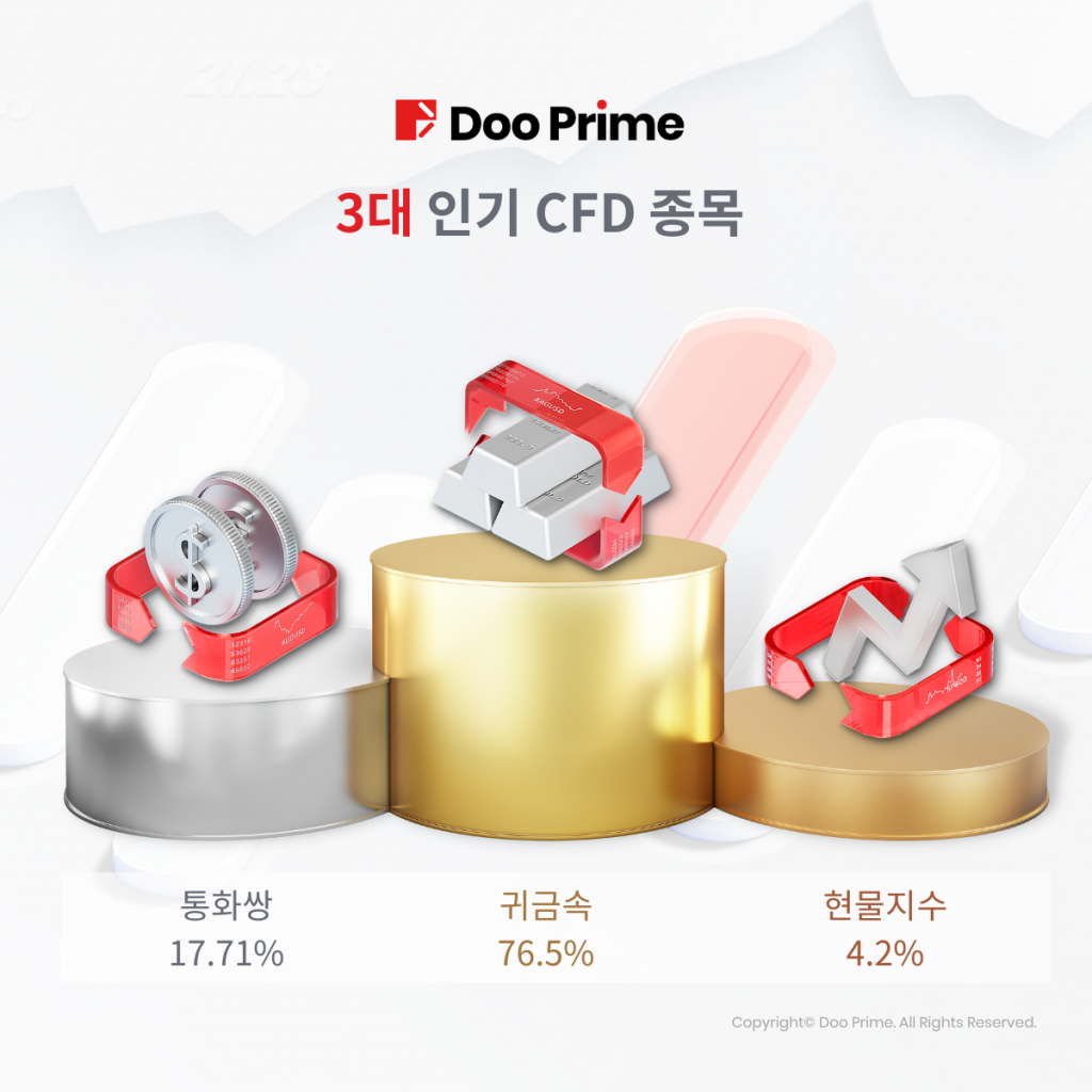 본 정보는 일반 참고용으로만 제공되며 어떠한 금융도구를 사고파는 어떠한 투자 건의, 추천, 청약 또는 초청으로도 볼 수 없습니다.본문에 나타난 정보는 어떠한 특정 접수자의 투자 목표나 재무상태를 참고하거나 고려하지 않은채 준비되어 있습니다.금융기구, 지수, 혹은 패키지 투자상품의 과거 표현을 언급하는것은 모두 그 미래실적의 믿을만한 지표로 볼 수 없습니다. Doo Prime은 표시된 정보에 대해 어떠한 진술이나 보증도 하지 않으며, 제공된 정보의 부정확함과 불완전으로 인한 어떠한 직간접적인 손실이나 손해에 대해서 아무런 책임을 지지 않습니다.Doo Prime은 개인투자와 관련된 어떠한 직간접적 거래 위험, 손익에 대해서도 책임을 지지 않습니다.