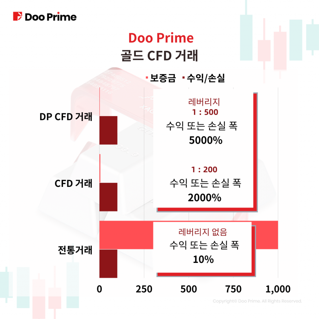 Doo Prime에서 1000달러 가치의 종목을 진입시 500배 레버리지를 사용하면 2달러의 보증금만 필요하게 됩니다.