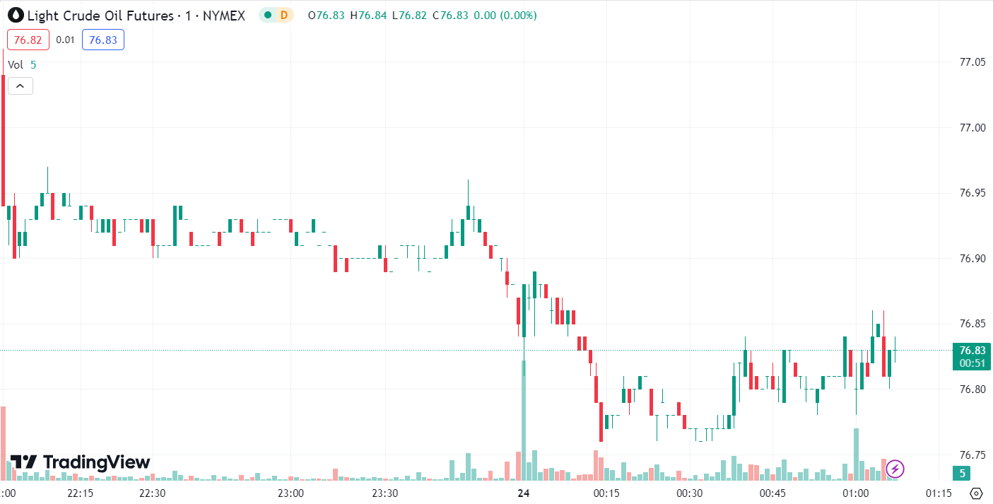 WTI crude oil exhibited an inverted V-shaped trend, giving up all its intraday gains during the U.S. trading session, and ultimately closed down 0.38% at USD 76.91 per barrel. Brent crude oil closed down 0.23% at USD 81.47 per barrel.