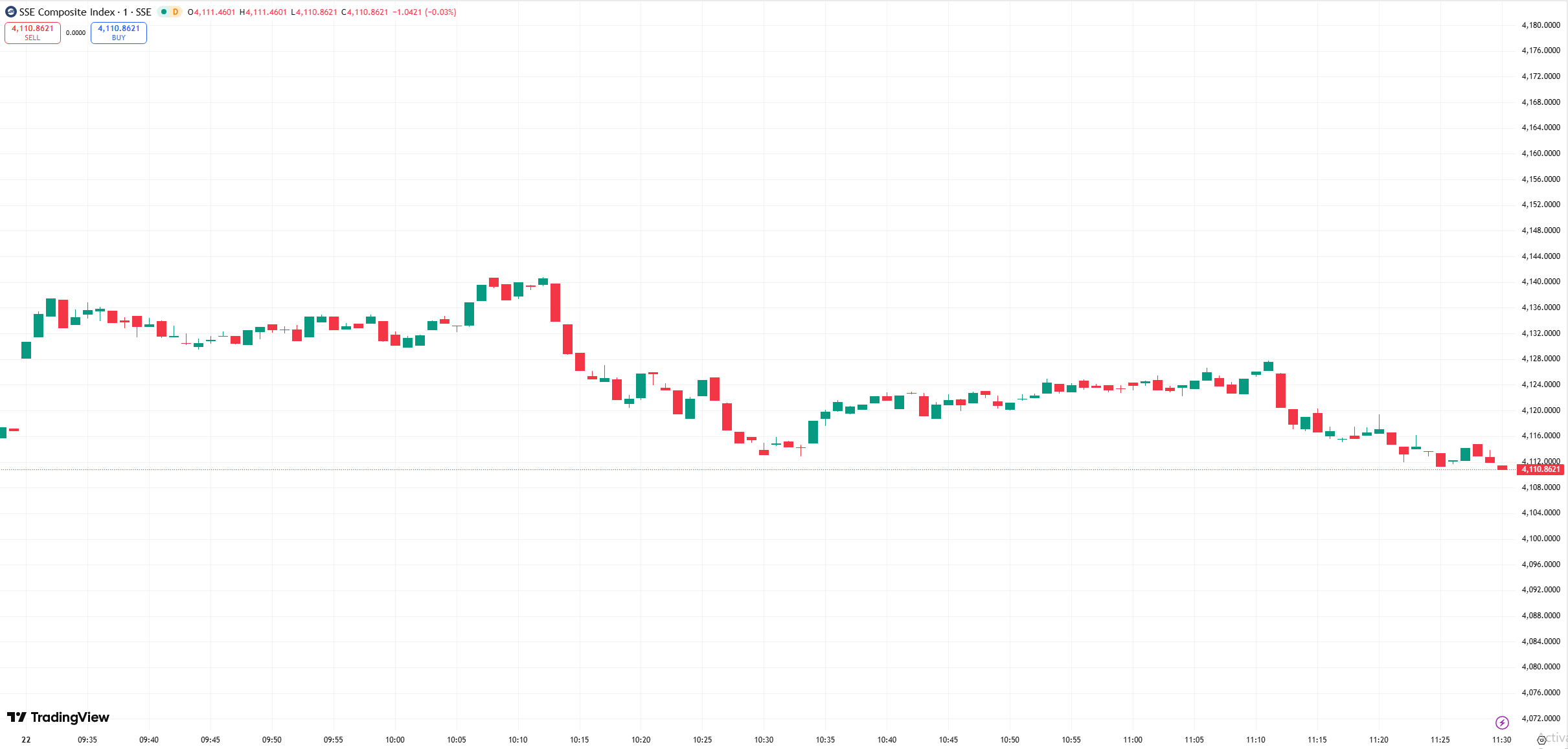 - Shanghai Composite: -0.15% to 4,110.86