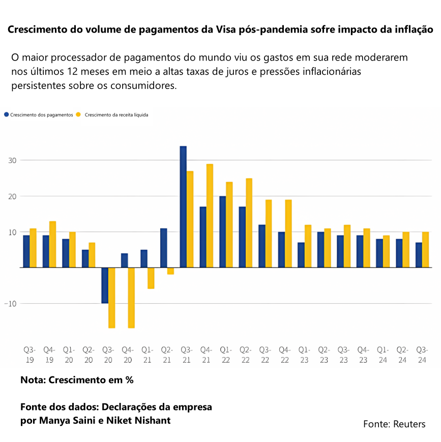 O crescimento do volume pós-pandemia da Visa sofre impacto da inflação.