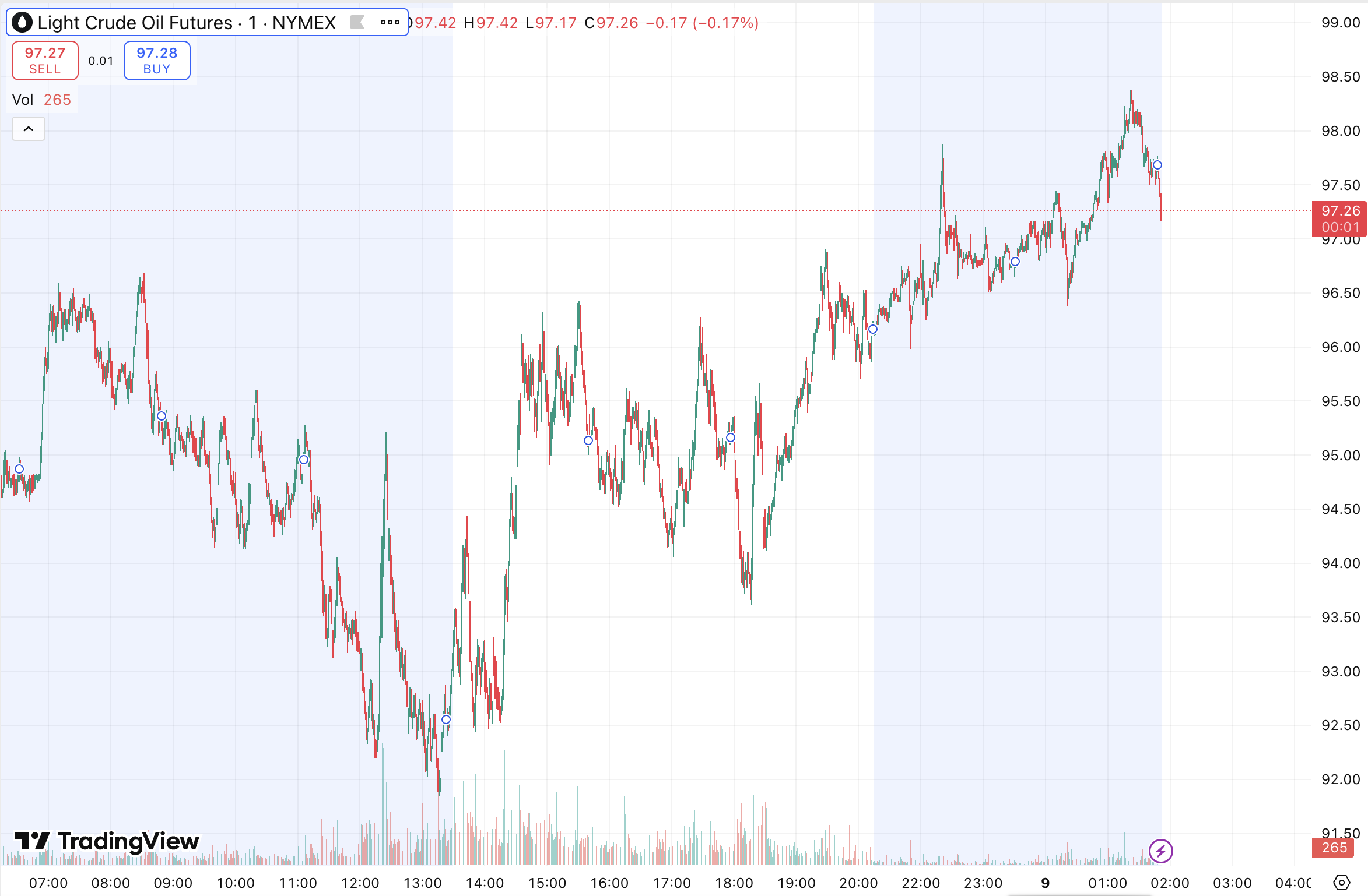 技术面上,日线结构显示油价在经历快速下跌后形成反弹修复,但整体仍处于高位震荡区间运行,趋势上呈现出中枢抬升特征。当前 90 美元附近构成关键支撑,该位置既是前期回调低点,也是多空分水岭,一旦跌破可能引发进一步下行空间;上方则面临 100 美元整数关口压力,该位置在心理与技术层面均具有较强阻力。动能方面,日线指标显示空头动能有所释放,但尚未形成趋势性反转信号。 4 小时级别来看,短期价格运行在反弹通道中,但上行动能逐渐减弱,若多次冲击 100 美元未果,可能引发技术性回调;反之,若突破该位置,则有望打开新的上行空间。整体来看,油价短期仍以区间震荡为主,等待基本面进一步指引。