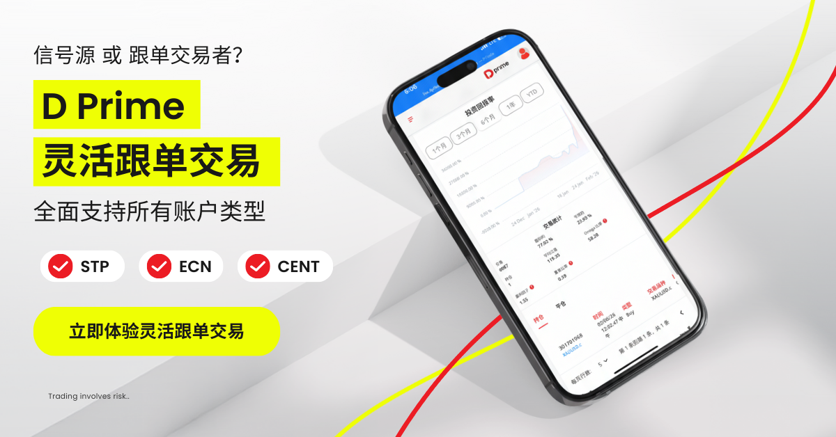 然而,尽管跟单交易的概念相同,但不同经纪商的实际机制、限制和用户体验可能差异巨大。在 D Prime,我们坚信跟单交易应当对每一位交易者——无论是”信号源”还是”跟单交易者”——都应该方便易用、灵活便捷且实用。