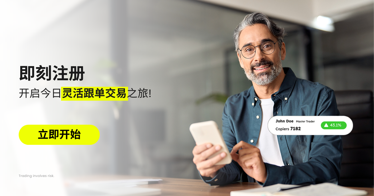 跟单交易已成为当今交易领域中一项强大且日益流行的工具。事实上,大约每六位零售交易者中就有一位参与各种市场(包括外汇、加密货币、指数和 CFD 股票)的跟单交易。这些数据不仅反映了跟单交易作为主流投资方式日益增长的接受度,也凸显了不同经验水平的交易者如何积极利用跟单解决方案参与金融市场。