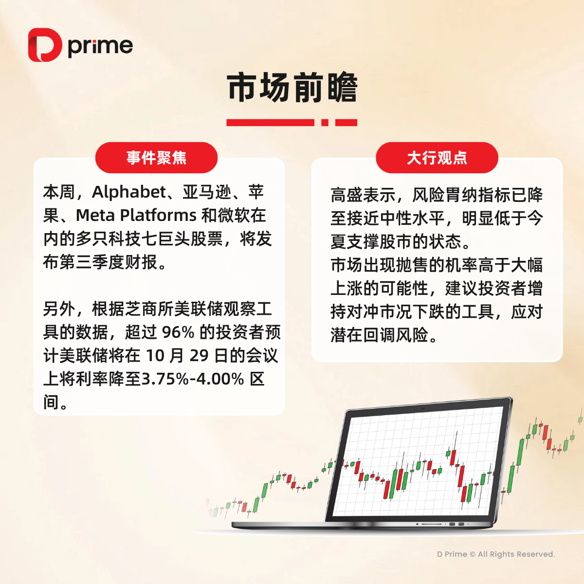 精选研报 | 上周,美国 9 月 CPI 按年升 3% 低于预期,降息预期强化,美股三大股指均再创历史新高。周多只美股科技七巨头股票将发布第三季度财报,市场预计美联储将在 10 月 29 日的会议上降息,还有哪些大事值得关注?下方图片速览: