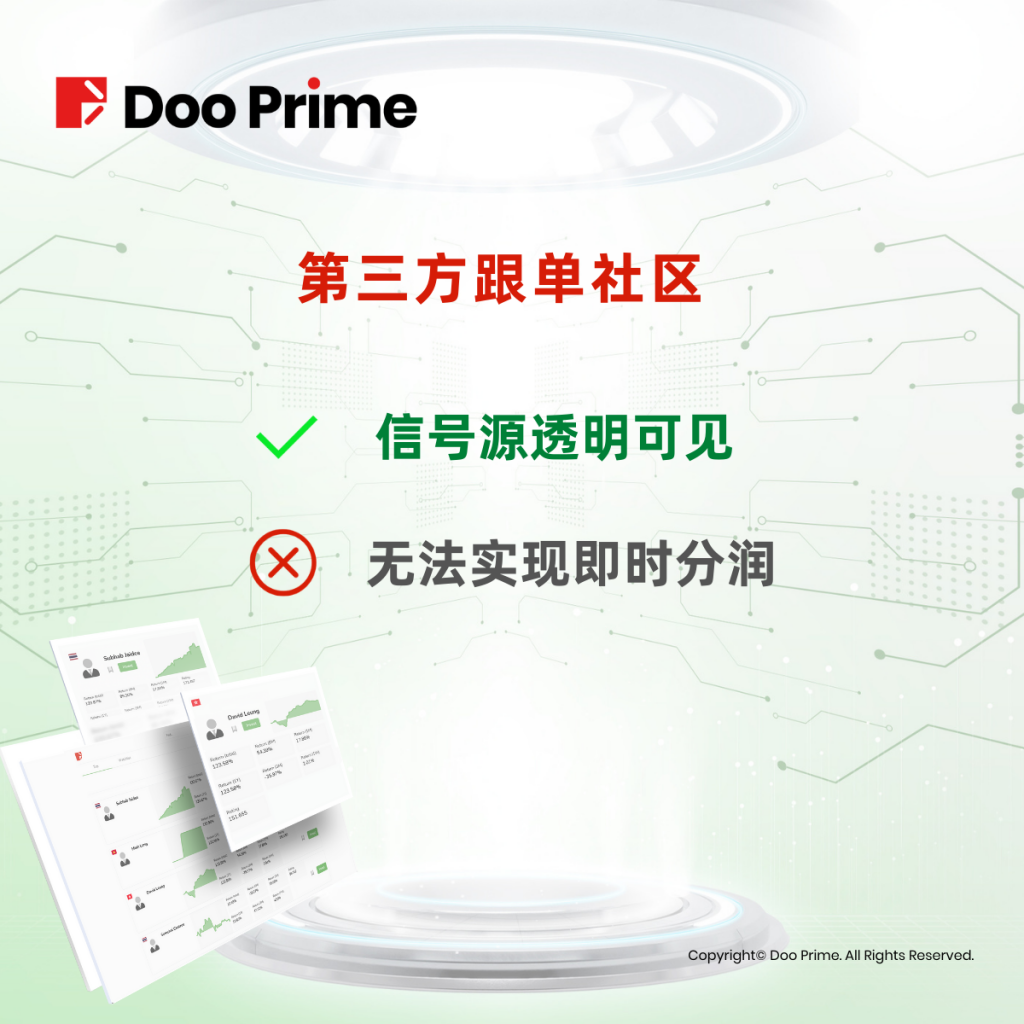 此外,Doo Prime CopyTrading 还能实现即时分润功能,从而吸引交易大师们入驻 Doo Prime 平台,成为平台上的优质信号源。