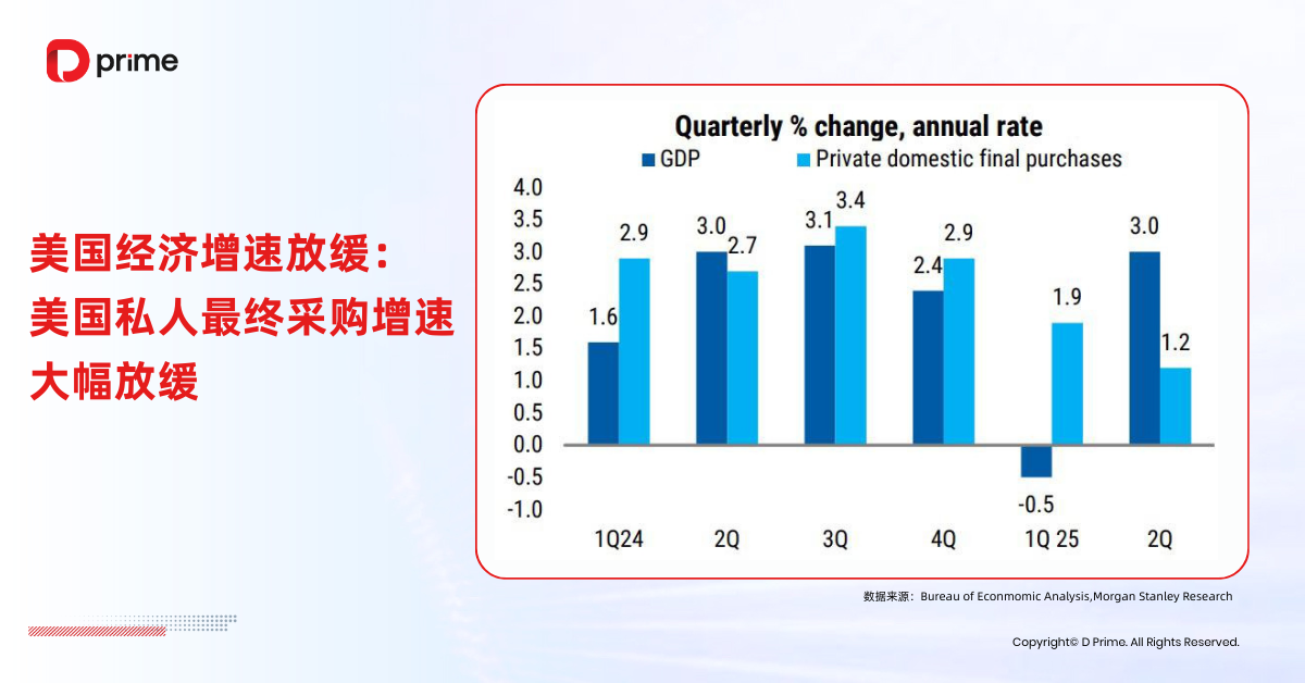 美国国内私人最终采购增速已从前一年的 2.7% 骤降至 1.2%,表明美国经济内部已经显现冷却迹象。