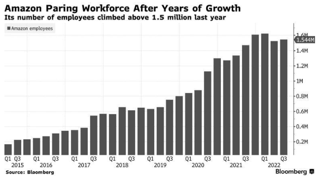 2018 年,亚马逊员工为 56 万人;截至 2021 年 12 月 31 日,员工人数已达约 160 万人,3 年内增长了 186%;截至 2022 年 9 月底,该公司仍然拥有超过 150 万名员工。这意味着最新计划的裁员人数 18000 人仅占员工总数的 1% 左右。