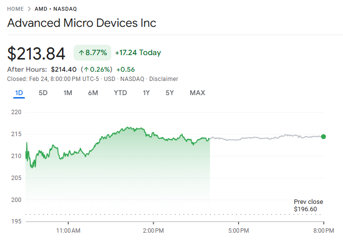 AMD 暴涨近 9%,传与 Meta 达成逾千亿美元 AI 芯片合作协议