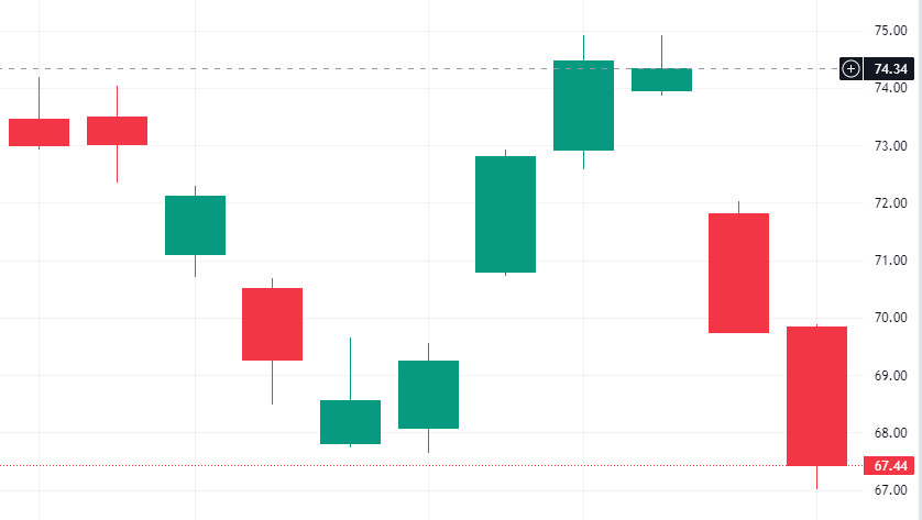 芯片巨头台积电在美股市场持续下跌,10 月 10 日收盘 67.44 美元/股,创两年来新低,最新市值折合人民币约 2.48 万亿。与历史高点相比,台积电跌幅达到 52.85%。