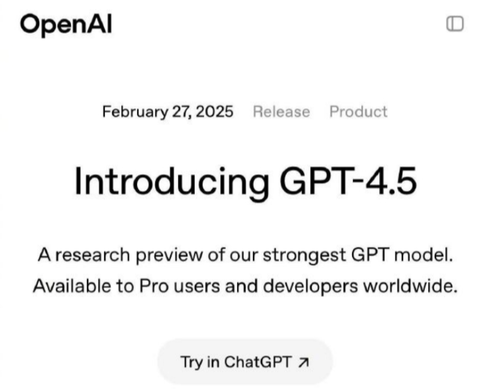 OpenAI 推出 GPT-4.5,Pro 用户抢先体验