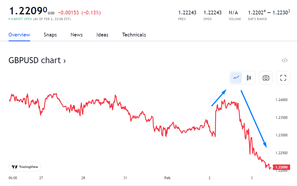 2 月 2 日 20:00,英国央行宣布加息 50 个基点,将基准利率从 3.5% 提高至 4%。这是英国央行自 2021 年 12 月以来连续第 10 次加息,累计加息幅度达到 390 个基点,为近 30 年来最大加息幅度。本次加息后,银行利率也来到了 2008 年 11 月以来的最高水平。