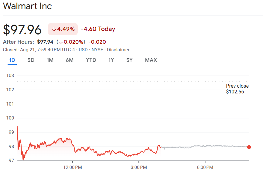 根据外媒综合报道,沃尔玛 21 日公布,第二季度营收达 1,774 亿美元,高于 LSEG 统计的分析师预期;但经调整后每股盈利仅 0.68 美元,低于市场预估的 0.74 美元,也是自 2022 年 5 月以来首次出现盈利未达预期。