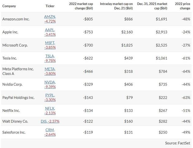科技股好景不再,市值集体大规模蒸发