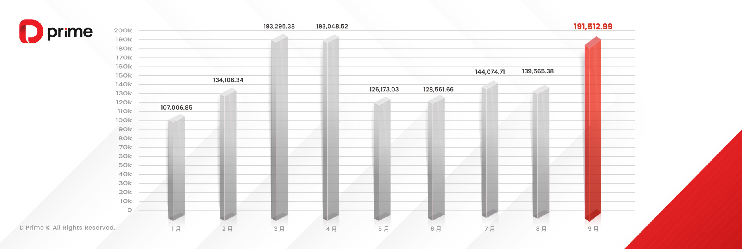 面对复杂多变的市场环境,D Prime 持续以专业、稳定的服务支持用户决策,助力把握交易机会。9 月平台交易量实现同比 48.85% 的强劲增长,进一步印证了我们在波动市况中的服务能力与客户信任。