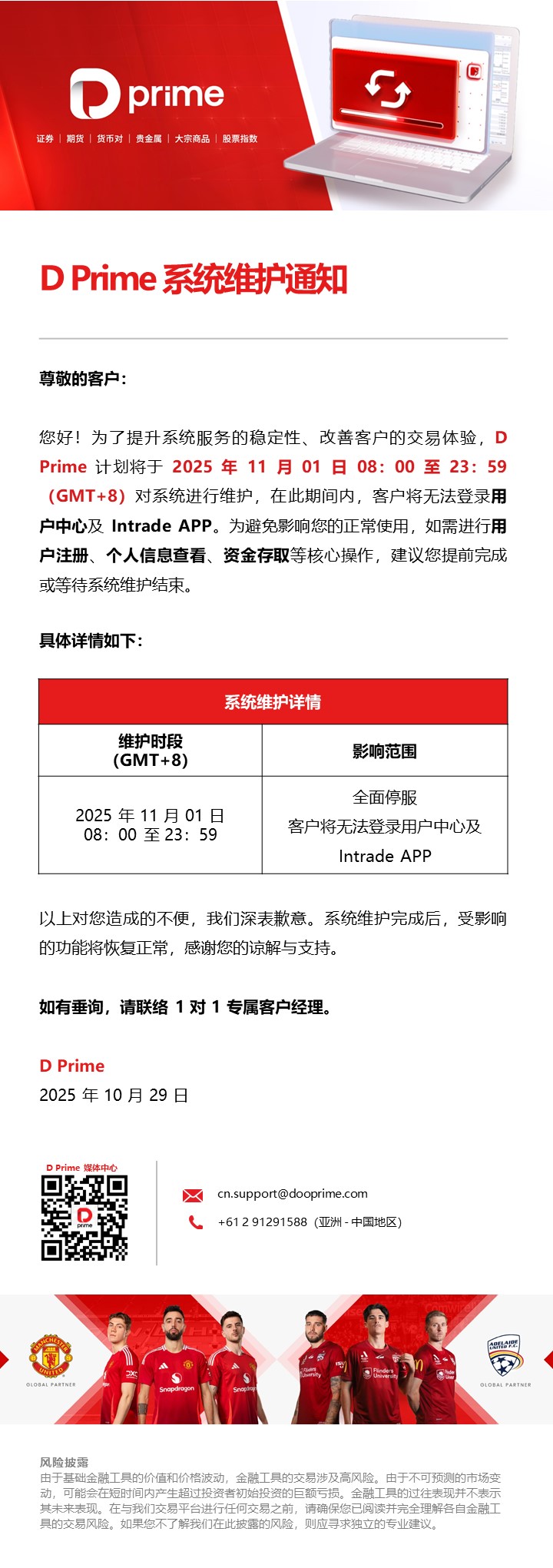 D Prime 全服交易系统维护通知
