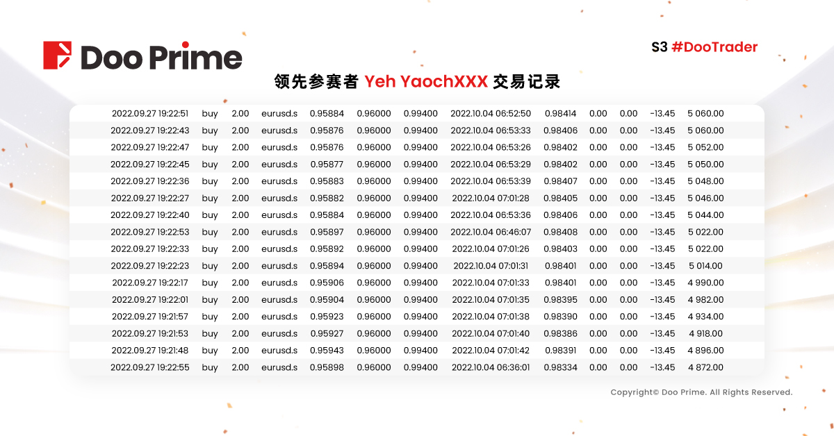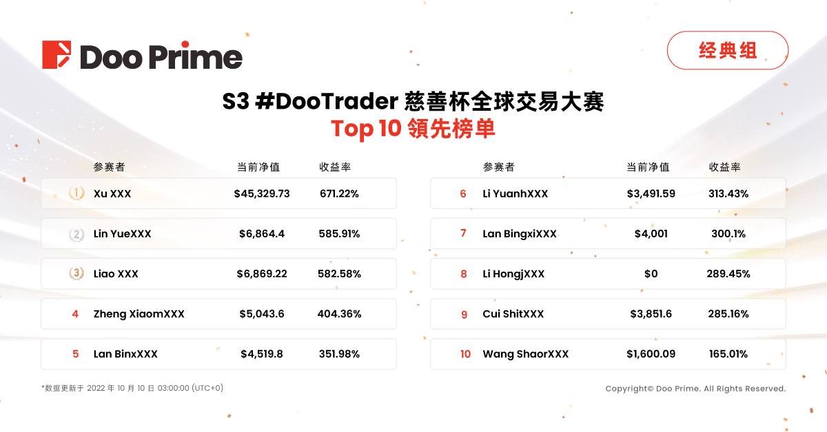 S3 #DooTrader 大赛战报:大师组冠亚军盈利出金超过40万美金,经典组战况激烈波段交易彰显威力