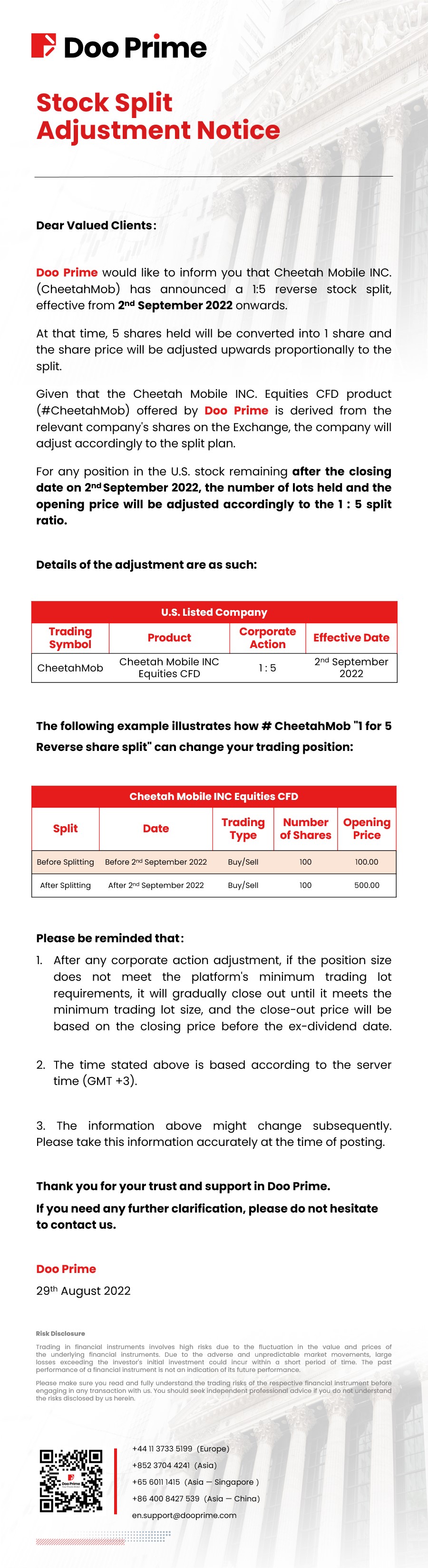 Doo Prime Stock Split Adjustment Notice