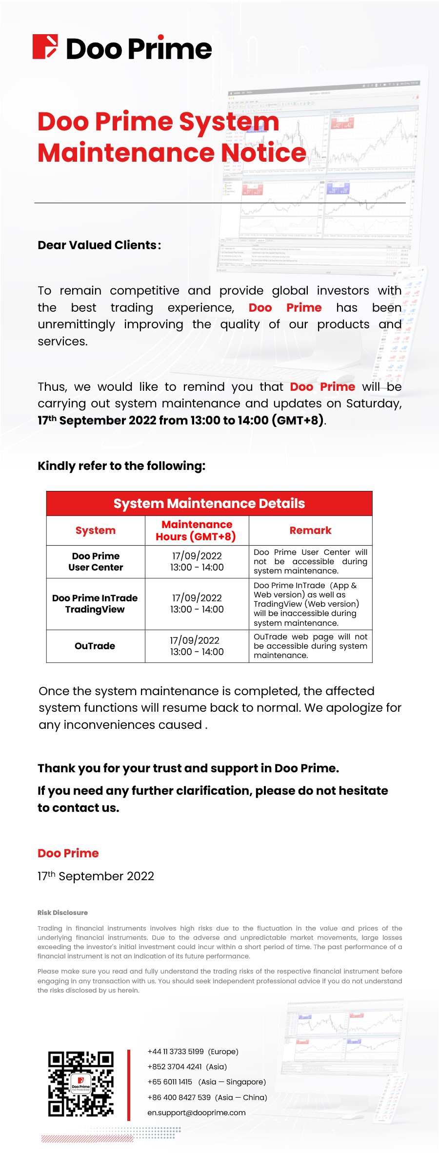 Doo Prime System Maintenance Notice