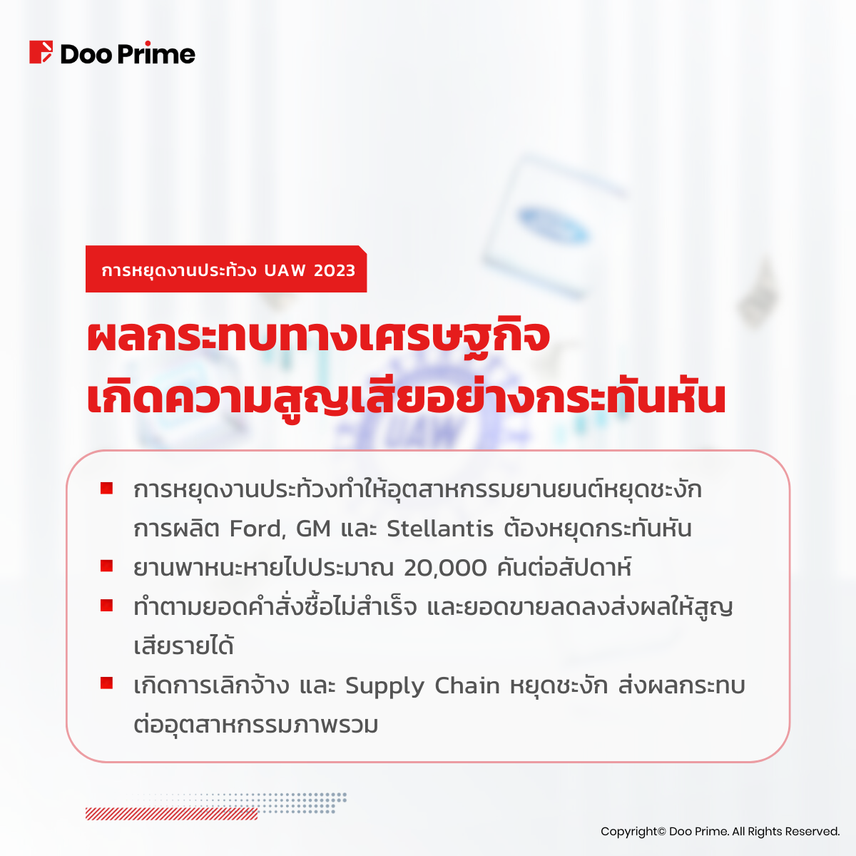 สหภาพแรงงานยานยนต์สหรัฐ (UAW) หยุดงานประท้วง ผลกระทบทางเศรษฐกิจ และตลาด Ford, GM และ Stellantis