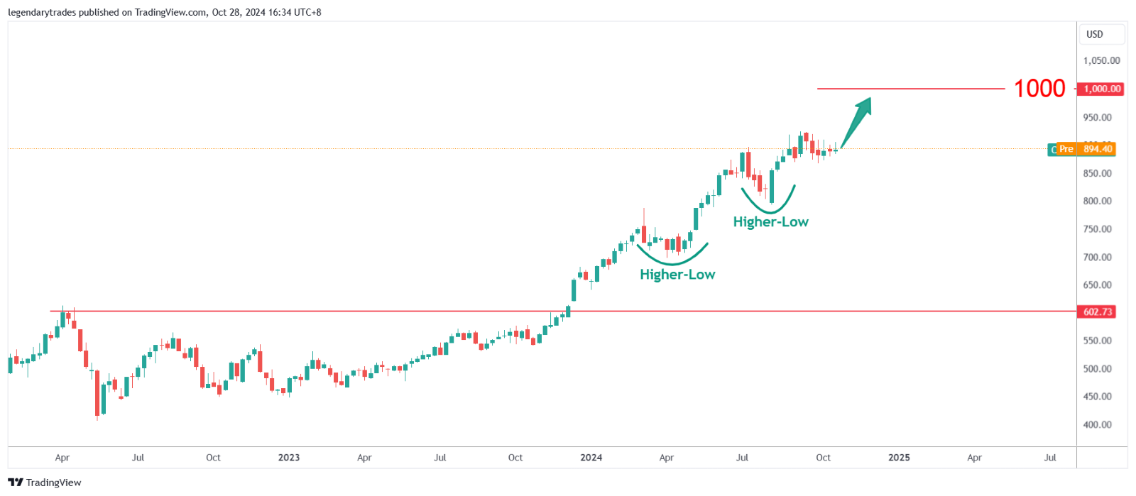จากมุมมองทางเทคนิค ราคาหุ้น COST ขณะนี้อยู่ในแนวโน้มขาขึ้นที่แข็งแกร่ง โดยมีความคาดหวังว่าจะยังคงมีแนวโน้มเช่นนี้ต่อไป ด้วยการใช้จ่ายในวันฮัลโลวีนที่เพิ่มขึ้นและฤดูกาลวันหยุดที่มีแนวโน้มดี หุ้นอาจสามารถทำลายระดับ 1,000 ดอลลาร์ได้ภายในสิ้นปี 2567