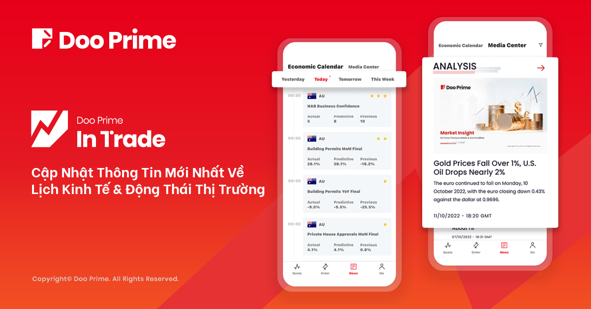Ngoài các lịch kinh tế được tham chiếu bởi Doo Prime InTrade, nền tảng này cũng tích hợp phân tích thị trường hàng ngày cùng các bài bình luận thị trường do chuyên gia phân tích nội bộ của Doo Prime biên soạn.